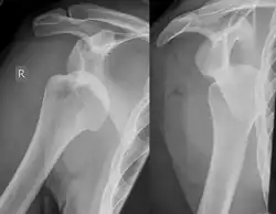 Ombro deslocado em raio-X.