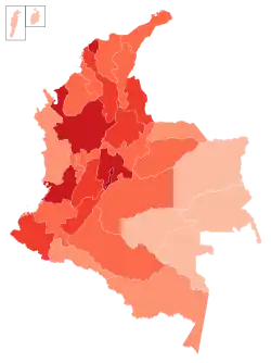 ![]() Mapa da pandemia de COVID-19 na Colômbia | |