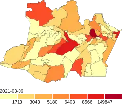 Num comunicado em 5 de março de 2021, o governador Wilson Lima flexibilizou a quarentena e retirou o estado da fase roxa. O transporte intermunicipal de barcos e barcaças foi autorizado, além de muitas outras atividades não essenciais.