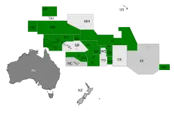 | Local | Oceania, com 21 países e territórios |