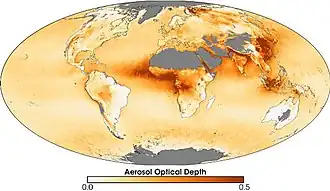 O escurecimento global é um fenômeno atmosférico caracterizado pela redução da visibilidade e luminosidade. Pensa-se que tenha sido causado por um aumento da quantidade de aerossóis atmosféricos, como o carbono negro, devido a emissões antropogénicas. Este efeito variava com a localização, mas estudos apontam para que a nível mundial a redução ocorrida foi da ordem dos 4% entre 1960 e 1990.[74][75] Esta tendência inverteu-se na década de 1990. O escurecimento global interfere com o ciclo hidrológico por via da redução da evaporação e pode ter estado na origem de secas ocorridas em várias regiões. Por outro lado, o escurecimento global cria um efeito de arrefecimento que poderá ter mascarado parcialmente os efeitos dos gases do efeito estufa no processo de aquecimento global.[76]