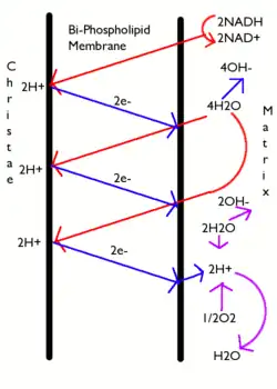 - ↑ Peter Mitchell (1961). «Coupling of phosphorylation to electron and hydrogen transfer by a chemi-osmotic type of mechanism». Nature. 191: 144–148Entrez PubMed 13771349
