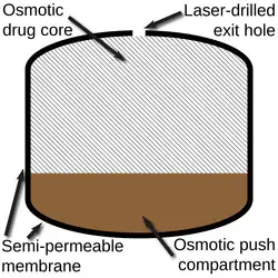 - ↑ a b c d e f g h «Oral osmotically driven systems: 30 years of development and clinical use.». European Journal of Pharmaceutics and Biopharmaceutics. 73: 311–23. PMID 19602438. doi:10.1016/j.ejpb.2009.07.002