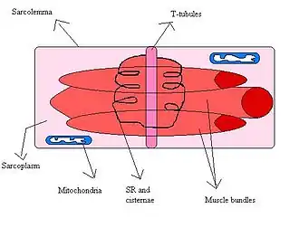 No músculo esquelético, cada túbulo T está ligado a dois retículos sarcoplasmáticos (vesículas intracelulares que estocam íons cálcio), formando uma tríade.