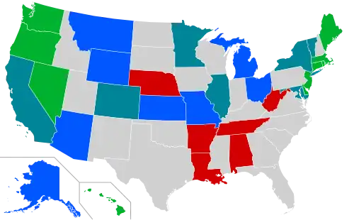 A partir de 2024, o Alasca, Califórnia, Illinois, Kansas, Michigan, Minnesota, Ohio e Vermont têm o direito ao aborto em suas constituições estaduais, seja explicitamente ou conforme interpretado pela suprema corte estadual.[30] Outros estados, como Colorado e Massachusetts, protegem o aborto sob a lei estadual. As constituições estaduais do Alabama, Louisiana, Tennessee e Virgínia Ocidental explicitamente não contêm o direito ao aborto.