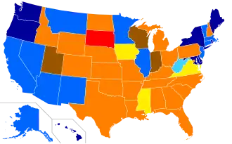 Iniciativas relacionadas ao aborto foram votadas em 2022 em seis estados, o maior número em um único ano. A Proposta 1 da Califórnia de 2022, a Proposta 3 de Michigan de 2022 e a Proposta 5 de Vermont de 2022 consagraram o direito ao aborto nas constituições estaduais, enquanto o referendo sobre o aborto no Kansas de 2022, a Emenda 2 do Kentucky de 2022 e o Referendo Legislativo de Montana nº 131 rejeitaram as restrições ao aborto.[121] Os eleitores em Ohio derrotaram a Edição 1 de Ohio de agosto de 2023 com a intenção de tornar as mudanças na constituição do estado mais difíceis, antes da Edição 1 de Ohio de novembro de 2023, que adicionou o direito ao aborto à constituição de Ohio.[122]
