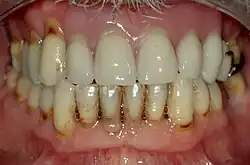 Esta patologia por pode ser causada pelo uso de escovas de dente, palitos, fio dental. Sua aparência é comumente descrita em forma de V, ( o que não permite o contato da escova dentária com a base do defeito). Os dentes mais comumente afetados são pré-molares e caninos.