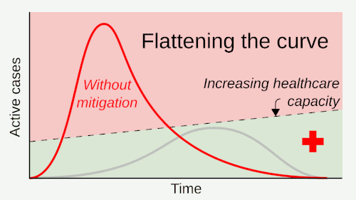 Achatar a curva é um conceito em saúde pública central para o gerenciamento da Pandemia de COVID-19. A curva é a curva epidemiológica, a representação visual do número de pessoas infectadas ao longo do tempo. Durante uma epidemia, o sistema de saúde pode colapsar quando o número de pessoas infectadas exceder a capacidade do sistema de saúde de cuidar delas. Um influente estudo do Imperial College, no Reino Unido, mostrou que uma resposta não mitigada ao COVID-19 poderia exigir até 46 vezes o número de leitos de Unidade de terapia intensiva (UTI) disponíveis. Achatar a curva significa retardar a propagação da epidemia, para reduzir o número máximo de pessoas afetadas ao mesmo tempo, e o sistema de saúde não ser sobrecarregado. O achatamento da curva se baseia em técnicas de mitigação, como o distanciamento social.[4]