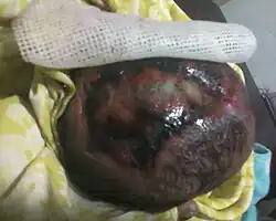 Acrania é a ausência da calota craniana.[1] Casos como esses são muito raros, e fetos com essa anomalia geralmente sobrevivem entre 1 hora e 3 dias, ou já nascem mortos. Fetos que apresentam acrania, acabam apresentando anencefalia, pois o líquido amniótico causa danos irreversíveis ao tecido cerebral. O parto também agrava a situação, ocasionando o óbito do feto.