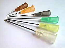 - ↑ «Agulha Hipodérmica Descartável». LF Equipamentos. Consultado em 21 de julho de 2025. Arquivado do original em 3 de março de 2016