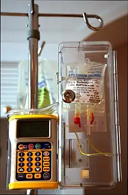 - ↑ Wong CA, Ratliff JT, Sullivan JT, Scavone BM, Toledo P, McCarthy RJ (2006). «A randomized comparison of programmed intermittent epidural bolus with continuous epidural infusion for labor analgesia». Anesthesia & Analgesia. 102 (3): 904–9. PMID 16492849. doi:10.1213/01.ane.0000197778.57615.1a
