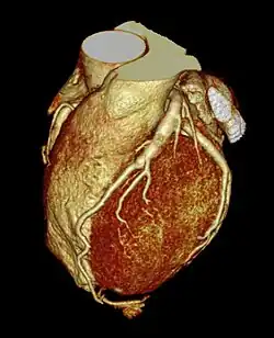 ![]() Imagem típica de uma angiotomografia de artéria coronária. |