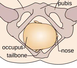 Na apresentação vértice, o occipício geralmente é anterior e, assim, está em posição ótima para negociar a curva pélvica por extensão da cabeça. Na posição occipício-posterior, o trabalho de parto torna-se prolongado, e mais intervenções operatórias são necessárias.[4] A prevalência de occipício-posterior persistente é de 4,7%.[4]