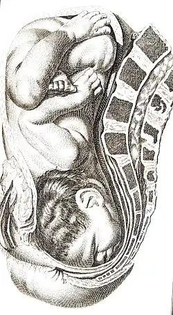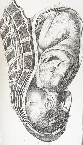 | Apresentação vértex, occipício anterior, William Smellie, 1792 | |