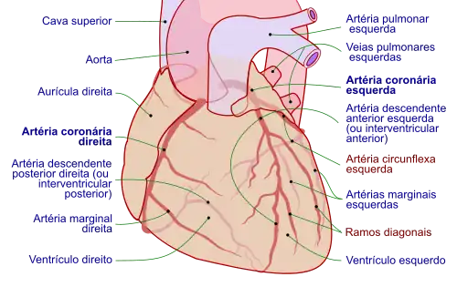 A parte que está entre a aorta e a bifurcação é conhecida como a artéria esquerda principal, enquanto o termo artéria coronária esquerda deve se referir somente à artéria esquerda principal ou à artéria esquerda principal e todos seus ramos. O entupimento dessa artéria causa a chamada morte súbita.