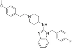 | Nome IUPAC | 1-[(4-fluorophenyl)methyl]- N-[1-[2-(4-methoxyphenyl)ethyl]- 4-piperidyl]benzoimidazol-2-amine | ||||||||||||