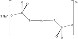 - ↑ Baggio, R (1973). «Crystal and molecular structure of trisodium dithiosulphate aurate(I), dihydrate, Na3[Au(S2O3)2],2H2O». Journal of Inorganic and Nuclear Chemistry. 35. 3191 páginas. doi:10.1016/0022-1902(73)80019-3