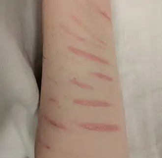 | Cicatrizes no antebraço causadas por lesões autoinfligidas | |