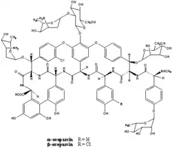 O Avoparcin, anteriormente fabricado pela Roche e Cyanamid, hoje tem sua comercialização proibida, por sua configuração molecular ser análoga à Vancomicina, que vinha causando resistência antibiótica[1] em Enterococcus.