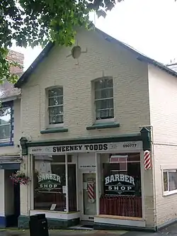 Barbearia em Torquay, Devon, com cilindro vermelho e branco. |