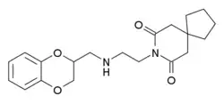 - ↑ Moser PC, Tricklebank MD, Middlemiss DN, Mir AK, Hibert MF, Fozard JR. Characterization of MDL 73005EF as a 5-HT1A selective ligand and its effects in animal models of anxiety: comparison with buspirone, 8-OH-DPAT and diazepam. British Journal of Pharmacology. 1990 Feb;99(2):343-9. PMID 1970269