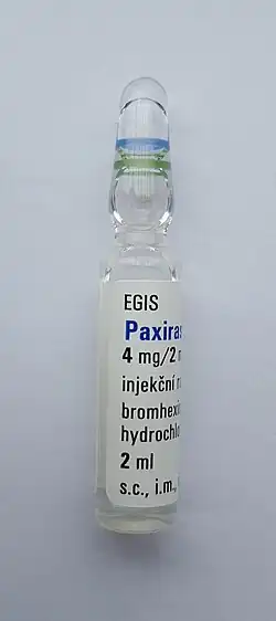Bromexina é um fármaco com propriedades mucolíticas, utilizado na bronquite, bronquiectasia, pneumoconiose, laparotomias e toracotomias.[1]