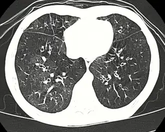 | TAC de alta resolução onde se observa bronquiolite obliterante | |