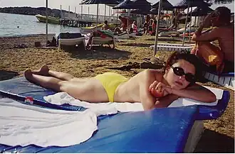 Turista russa bronzeando-se, na Turquia