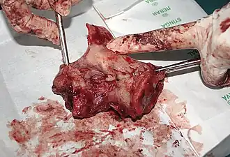 O tumor pode se disseminar por extensão direta para estruturas adjacentes, por metástases para linfonodos regionais cervicais, ou mais distantemente, através da corrente sanguínea. Metástases à distância para o pulmão também são comuns.