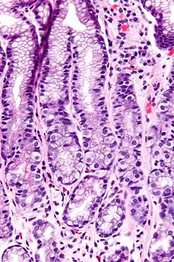 A célula G é um tipo de célula do antro gástrico, parte afunilada do estômago, que secreta gastrina, hormônio protéico liberado na ingestão de alimentos com alto teor protéico. Atua na mucosa gástrica estimulando células parietais a liberarem HCl.[1]