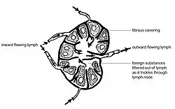 A linfa dos tecidos periféricos contém antígenos solúveis e chega ao linfonodo por meio de vasos linfáticos aferentes. Uma resposta imune adaptativa ocorre em resposta à presença do antígeno no linfonodo. As células apresentadoras de antígenos se acumulam perto das vênulas endoteliais altas para processar antígenos solúveis. Os antígenos também são apresentados na superfície das células dendríticas.