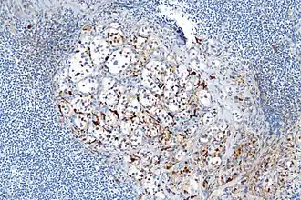 - Cerca de 40% dos tumores carcinoides apresentam dispersões de células sustentaculares, que se coram positivamente para S-100.[6]