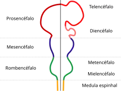 Todos os cérebros vertebrados partilham de uma mesma forma fundamental, que pode ser apreciada mais facilmente examinando como eles se desenvolvem.[6] O sistema nervoso aparece na forma de uma fina tira de tecido que corre pelo dorso do embrião. Esta tira engrossa e então se dobra para formar um tubo oco. A extremidade frontal do tubo se desenvolve e forma o cérebro. Em sua forma mais recente, o cérebro aparece como três protuberâncias, que finalmente formarão o posencéfalo, o mesencéfalo e o rombencéfalo. Em muitas classes de vertebrados, o tamanho destas três partes permanece similar no adulto, mas nos mamíferos o posencéfalo fica muito maior que as outras partes, e o mesencéfalo bem pequeno.