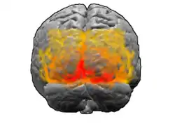 O córtex visual do cérebro é a área do córtex cerebral que processa as informações visuais. Ele está localizado no lobo occipital. A entrada sensorial originada dos olhos viaja através do núcleo geniculado lateral no tálamo e então atinge o córtex visual. A área do córtex visual que recebe a entrada sensorial do núcleo geniculado lateral é o córtex visual primário, também conhecido como área visual 1 (V1), área de Brodmann 17 ou córtex estriado. As áreas extra-estriadas consistem nas áreas visuais 2, 3, 4 e 5 (também conhecidas como V2, V3, V4 e V5, ou área de Brodmann 18 e toda a área de Brodmann 19).[1]