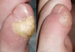 Os calos apresentam três formas clínicas distintas: helomas, tilomas e hiperqueratosianas.
