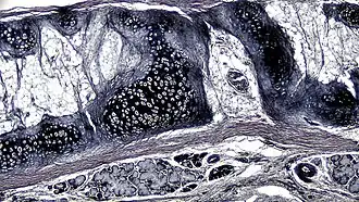 ![]() Corte transversal de cartilagem elástica de mamífero | |