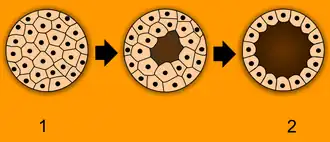 Após a segmentação do zigoto, forma-se uma esfera maciça de células denominada mórula; esta quase sempre forma um oco para dar lugar a uma blástula, de maneira a que todas as células se situem na periferia e deixem uma cavidade central cheia de líquido, chamada blastocelo,[2] que se conhece como cavidade geral primária por ser a primeira a formar-se no embrião. Este blastocelo embrionário persiste nos adultos dos animais chamados pseudocelomados, como os nematodes e os rotíferos.