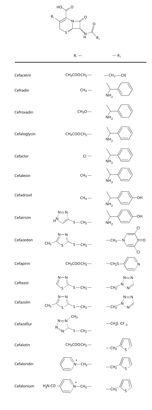 - Quarta geração: mesma actividade contra Gram-negativas, mas mais potentes para Gram-positivas do que os de terceira geração. Mais resistentes à degradação por beta-lactamase (mais eficazes contra estirpes parcialmente resistentes).