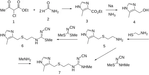 | Nome IUPAC | 2-ciano-1-metil-3-[2-(5-metilimidazol-4-ilmetiltio)etil]-guanidina. | ||||||||||||||||