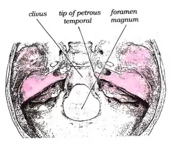 O nervo abducente (VI nervo craniano) segue ao longo do clivo durante seu curso. O aumento da pressão intracraniana pode prender o nervo neste ponto e causar sinais de paralisia. O clivo também é o local do cordoma (um tumor maligno raro).