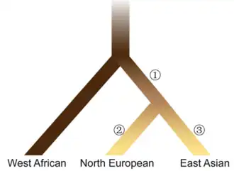 Todos os seres humanos modernos compartilham um ancestral em comum que viveu há cerca de 200.000 anos atrás na África.[14] As comparações entre genes de pigmentação da pele conhecidos em chimpanzés e africanos modernos mostram que a pele escura evoluiu junto com a perda de pêlos no corpo cerca de 1,2 milhão de anos atrás e é o estado ancestral de todos os seres humanos.[15] Investigações sobre populações de pele escura no sul da Ásia e Melanésia indicam que a pigmentação da pele nestas populações é devido à preservação deste estado ancestral e não em função de novas variações sobre uma população previamente iluminada.[16]