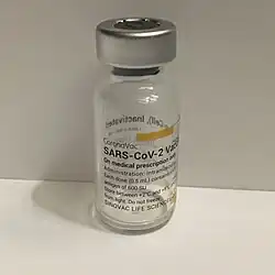 CoronaVac é uma vacina contra a COVID-19 desenvolvida pela companhia biofarmacêutica chinesa Sinovac Biotech. A vacina utiliza uma versão quimicamente inativada do SARS-CoV-2, o tipo de coronavírus que causa COVID-19.[1] A CoronaVac não precisa ser congelada e tanto o produto final quanto a matéria-prima para a formulação da CoronaVac podem ser transportados refrigerados a 2−8°C, temperaturas nas quais as vacinas de gripe são mantidas.[2]