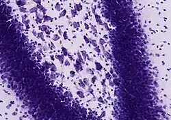 A presença de corpúsculos de Nissl pode ser demonstrada por uma coloração seletiva desenvolvida por Nissl que se baseia em uma coloração por anilina usada para marcar grânulos extranucleares de RNA.