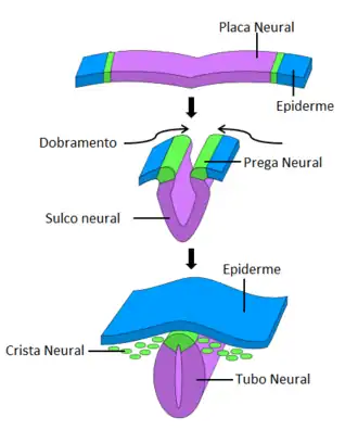 Ela se origina da interação da placa neural com o tecido ectodérmico não neural durante a gastrulação [2]. Durante a neurulação há o levantamento das pregas neurais e fechamento do tubo neural, nesse processo acontece a delaminação das células da crista neural, essas permanecem próximas a região dorsal do tubo neural.[1]