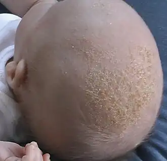 | Sintomas | Crostas descamativas no couro cabeludo[1] |