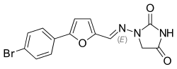 - ↑ Snyder HR, Davis CS, Bickerton RK, Halliday RP (1967). «1-[(5-arylfurfurylidene)amino]hydantoins. A new class of muscle relaxants». J Med Chem (em inglês). 10 (5): 807–10. PMID 6048486. doi:10.1021/jm00317a011