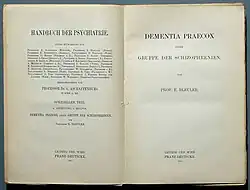- ↑ McNally K (dezembro de 2013). «Demência praecox revisited». History of Psychiatry. 24 (4): 507–509. PMID 24573761. doi:10.1177/0957154X13501454