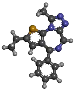 - ↑ Weber KH, Bauer A, Langbein A, Daniel H. «Heteroaromaten mit anellierten Siebenringen, III. Umwandlung von Thienotriazolooxazepinen in Diazepine». Justus Liebigs Annalen der Chemie (em alemão). 1978: 1257–1265. doi:10.1002/jlac.197819780806