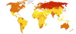Mapa das taxas de suicídio entre 1978 e 2008.