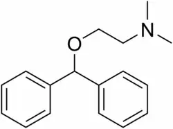 O dimenidrinato é um medicamento utilizado como anti-emético e anti-vertiginoso,[4] principalmente os decorrentes de viagens e com uso indicado (com prescrição do médico) na gravidez. Farmacologicamente pertence a classe dos anti-histamínicos e inibidores de H1. Quimicamente é um sal cloroteofilinado do agente anti-histamínico difenidramina, ou seja, é composto por difenidramina e 8-Cloroteofilina.[5]